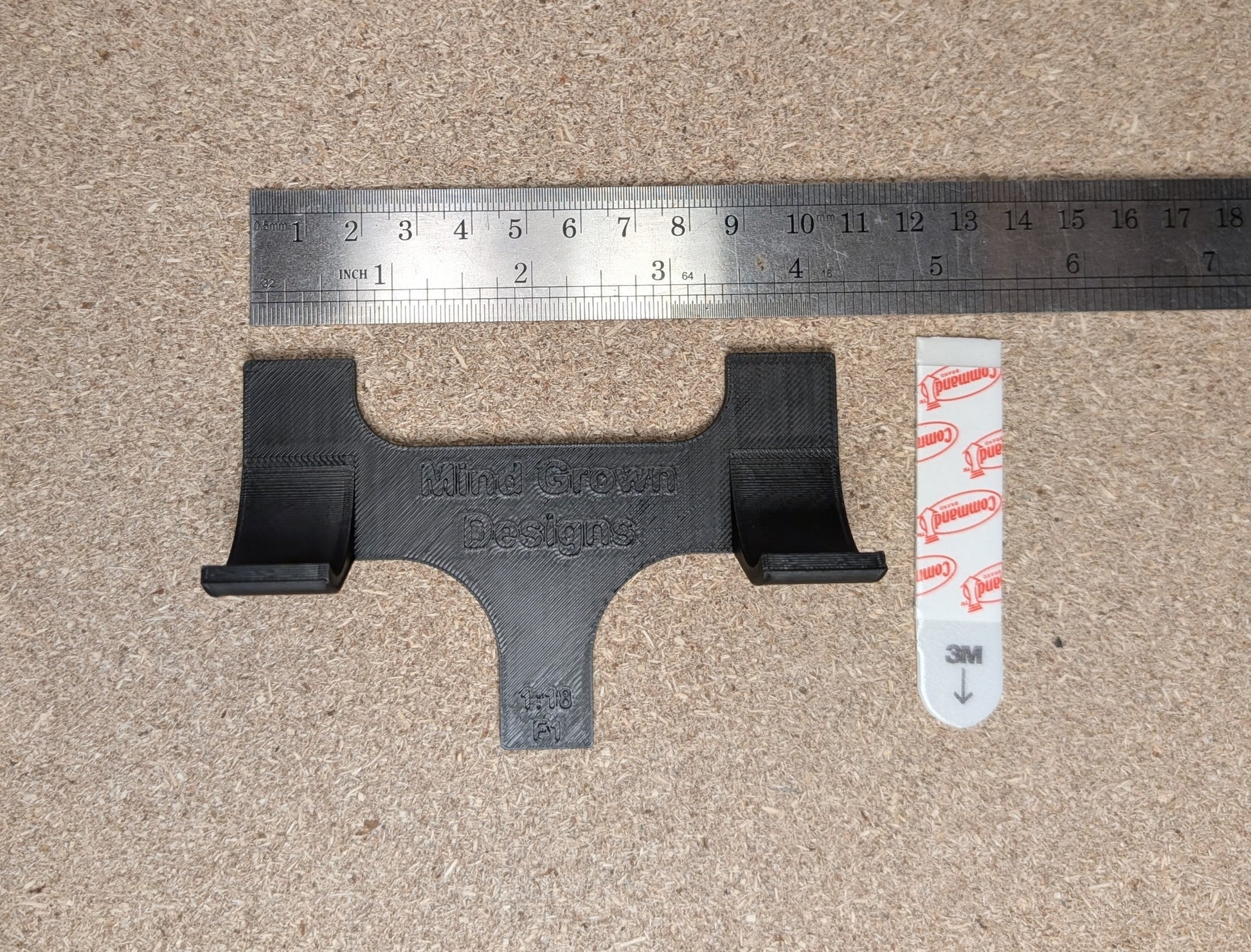 Custom designed vertical mount for Minichamps and Bburago 1/18 scale die-cast F1 car models with wall protection in mind. Designed for use with 3M Small Command strip. Can be placed on walls, bookshelves, or any other flat surface a Command strip will stick to.