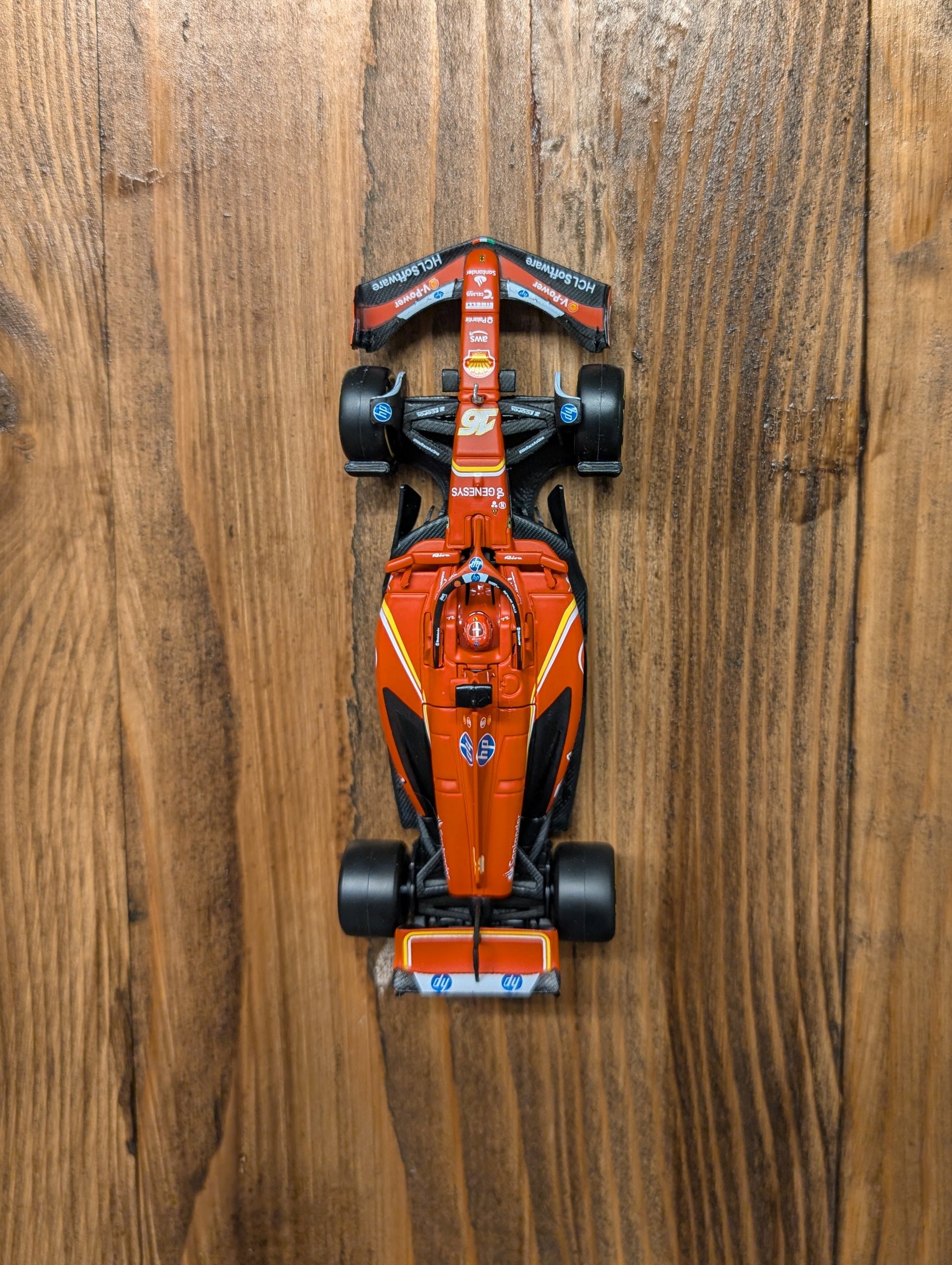 I've tested with 2024 and 2023 Bburago 1/43 (1:43) scale model F1 cars (specifically Ferrari and Red Bull respectively). The 2024 Ferrari car stays well off the wall, while the 2023 Red Bull doesn't touch, but is much closer to the wall. Since there is a fair amount of variation in these models by year and constructor, let me know if you are worried about your model touching the wall when you order.